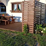 La villa Domek Na Odludziu Kaszuby Wiele se encuentra a 4 km de la Kaplica Biczowania e invita a los huéspedes a disfrutar de una terraza.